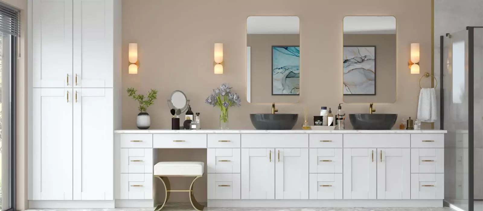Elevate your bathroom with semi-custom vanities that offer clean design, natural textures, and thoughtful storage — combining elegance and practicality to create a calming, stylish space that suits your everyday needs.